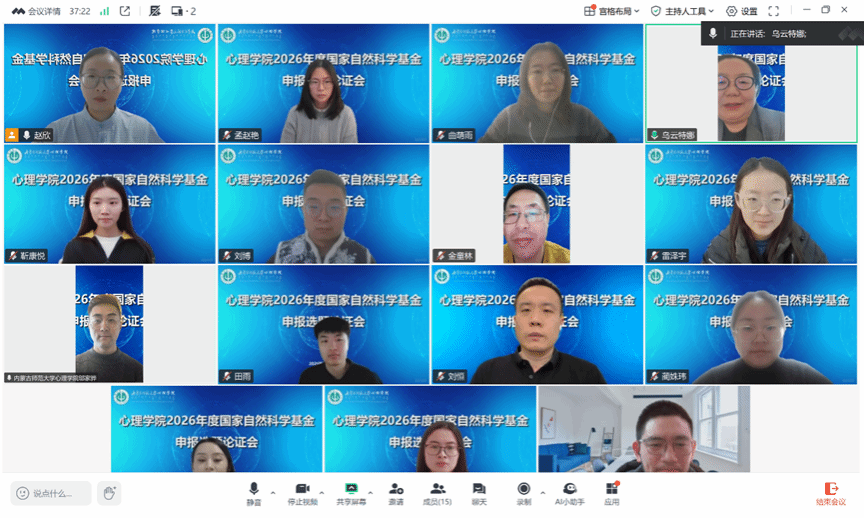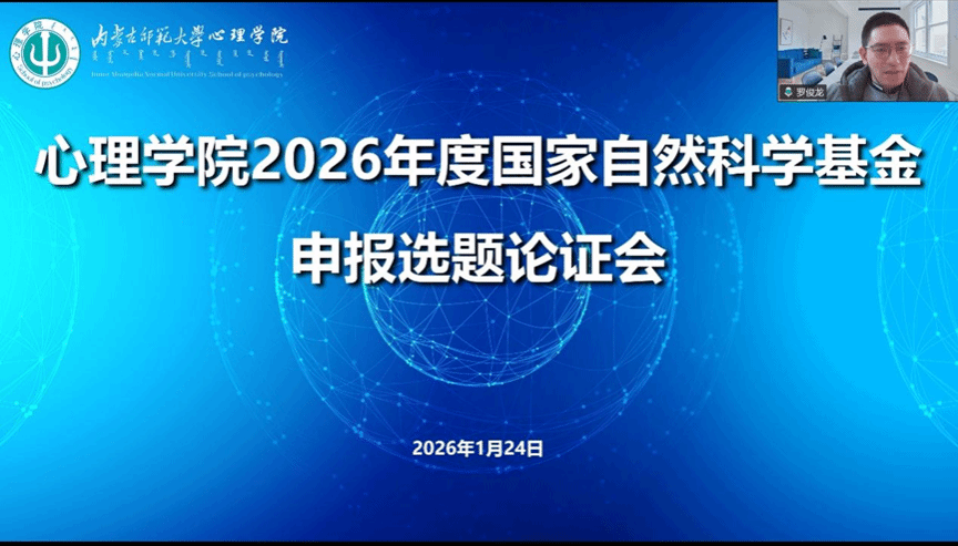 为进一步落实学校关于组织开展国家自然科学基金选题优化与代码选择专项工作的部署要求,助力学院精准把控申报选题质量,切实提升项目申报质量与立项成功率,1月24日,买球体育官方网站在线上召开2026年度国家自然科学基金申报选题论证会,特邀上海师范大学买球体育官方网站副院长、博士生导师罗俊龙教授进行选题专项咨询与指导。论证会由院长乌云特娜主持,学院拟申报 2026 年度国家自然科学基金的教师及全体博士研究生参会。