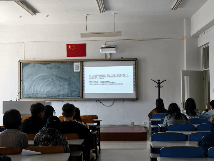 “国家安全闯关”题目选自国家安全部官方公众号,闯关题目贴近大学生生活。从“新朋友”提出的看似无害却暗藏玄机的询问,到“研究项目”抛出的充满诱惑却疑点重重的机遇,再到“轻松兼职”许诺的高额回报,每一个闯关内容都提醒大学生,国家安全领域中那些不易察觉却又无处不在的陷阱与风险,进一步强化了学生们“国家安全无小事”的思想。