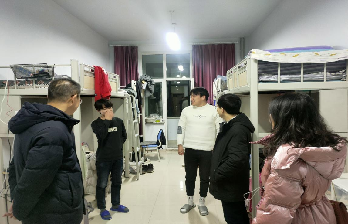 为了更好地关心假期留校学生,及时了解学生的思想状态和心理诉求,1月14日晚,买球体育官方网站党委书记侯友、党委副书记副院长张春林、副院长金童林、学就办主任张金钟一行深入宿舍楼走访看望假期留校同学,为他们送去了温暖和关怀。