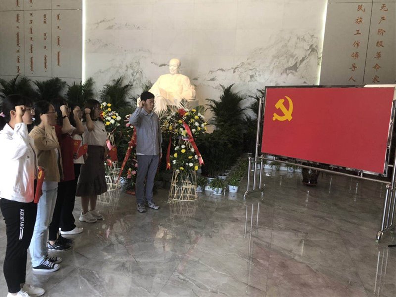 为庆祝中国共产党成立98周年、新中国成立70周年,深入学习贯彻习近平新时代中国特色社会主义思想,结合“不忘初心、牢记使命”主题教育,买球体育官方网站研究生党支部和本科生党支部在6月30日组织全体学生党员赴乌兰夫纪念馆开展“我是党员”集中宣誓活动。通过党员佩戴党员徽章,亮明身份,重温入党誓词活动,以隆重的仪式感,进一步增强党员身份意识,强化党员自豪感荣誉感和责任感。在庄严的重温入党誓词仪式中引导党员悟初心、筑初心,不断强化党的意识和党员意识。