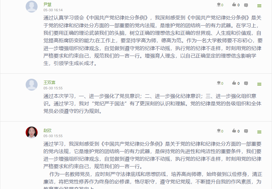 党课结束后,支部党员在学习通线上平台,结合自身工作特点进行了主题讨论,表示要强化自我约束,提高免疫能力,高质量完成党纪学习教育任务,凝聚干事创业的精气神,在新征程上作出新贡献。