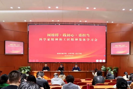 为深入学习贯彻党的二十届三中全会精神,弘扬科学家精神、工匠精神,激发教师教学科研热情,10月31日下午,买球体育官方网站、新闻传播学院和设计学院在赛罕校区信息楼报告厅联合举办“树榜样·践初心·勇担当—科学家精神和工匠精神集体学习会”,三个学院全体教师共百余人参加此次会议。