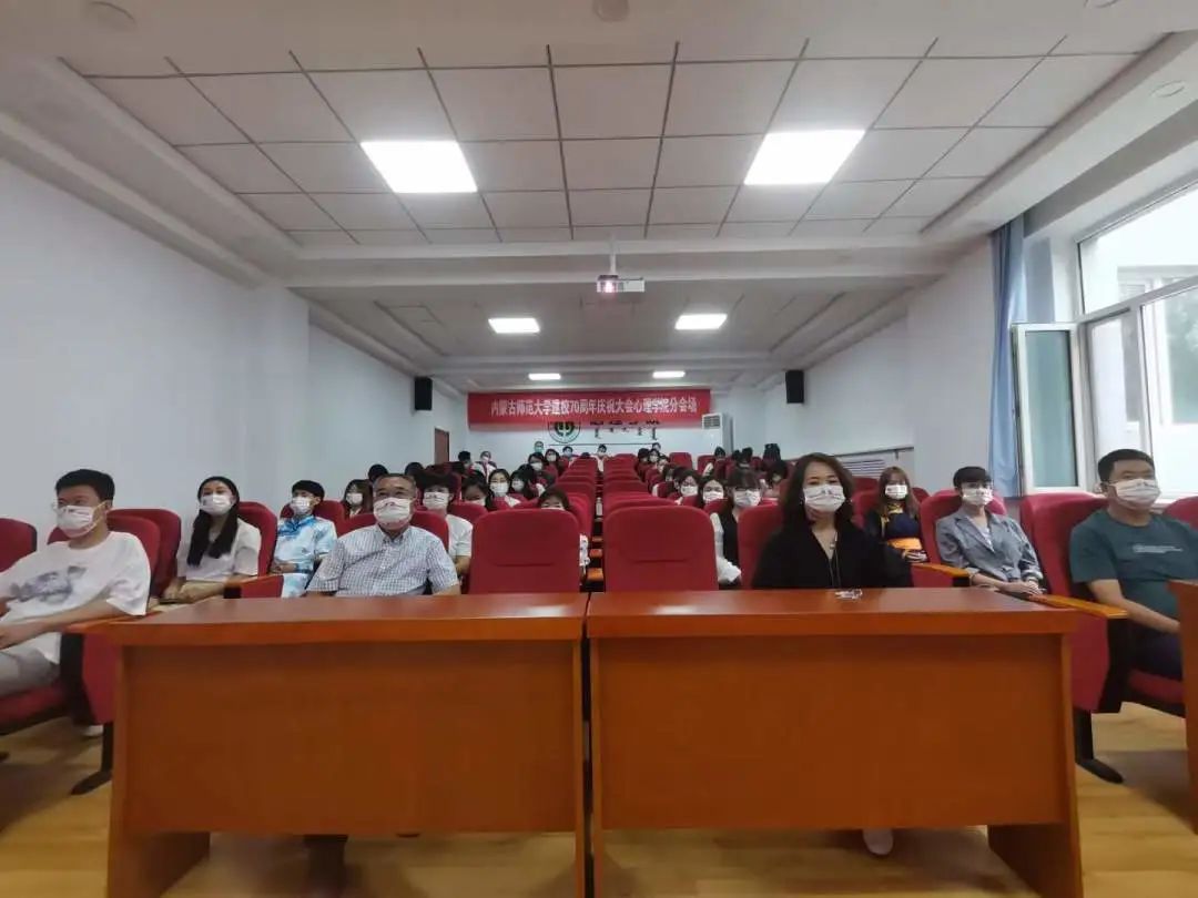 七秩铸辉煌,内师谱华章。8月8日,买球体育官方网站举行建校70周年庆祝大会。买球体育官方网站党委书记七十三教授,党委副书记副院长张晓阳及部分教师代表和学生代表在学院楼206买球体育官方网站分会场共同观看大会直播,感受七十年来买球体育官方网站的风雨历程,为七十周年校庆送上最为诚挚的祝福。