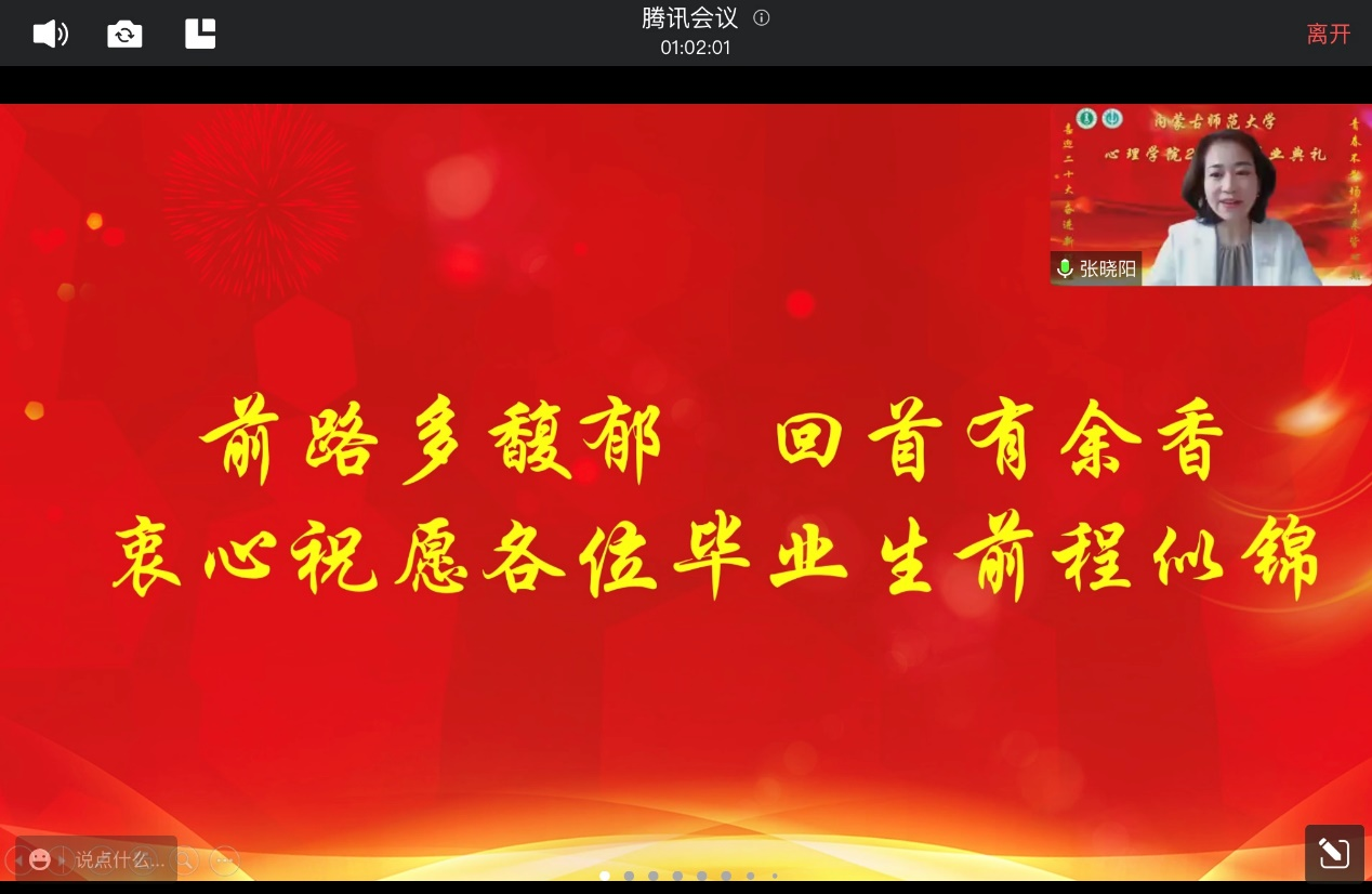 喜迎二十大,奋进新征程;青春不散场,未来皆可期。6月28日上午,买球体育官方网站2022届毕业典礼在云端隆重举行。买球体育官方网站党委书记七十三、院长乌云特娜、副院长侯友,买球体育官方网站全体教师及2022届毕业生和部分毕业生家长朋友们通过线上的方式齐聚一堂。典礼由学院党委副书记、副院长张晓阳主持。