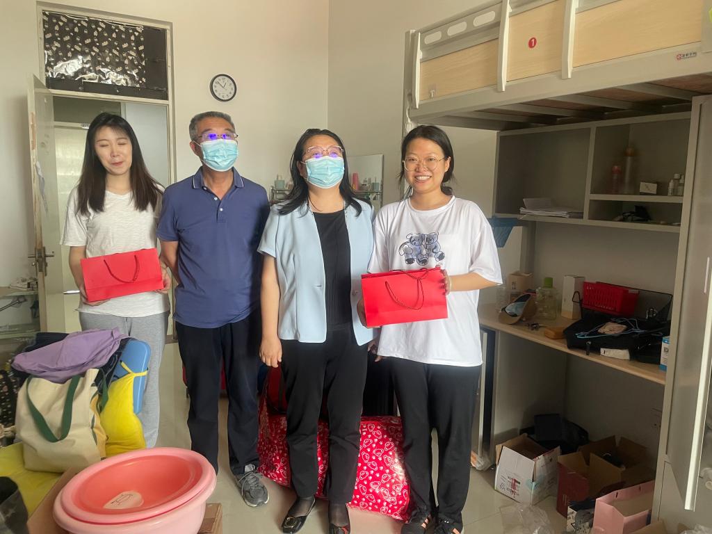 院领导一行走访了返校毕业生,与同学们亲切交谈,详细询问大家在疫情防控期间居家学习及就业等情况,为返校毕业生送去慰问与关怀,勉励同学们坚定理想信念、加强自我锤炼、保持乐观积极的心态,科学规划个人职业发展,早日成长为国家和社会需要的合格人才,母校欢迎大家常回“家”看看,邀请大家在即将到来的学校70周年华诞回校一同庆祝。