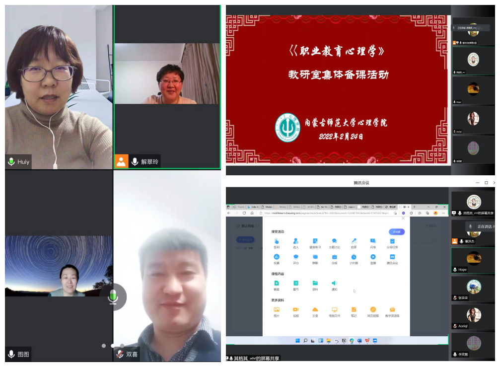 为适应新冠肺炎防控形势下的线上教学,买球体育官方网站各公共课教研室分别于2月22日与2月24日组织开展了《中学教育心理学》《职业教育心理学》线上集体备课活动,本学期授课教师均在线参加。